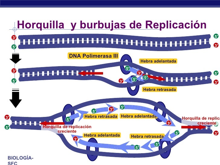 molécula se crea la burbuja de replicación donde se encuentran las horquillas